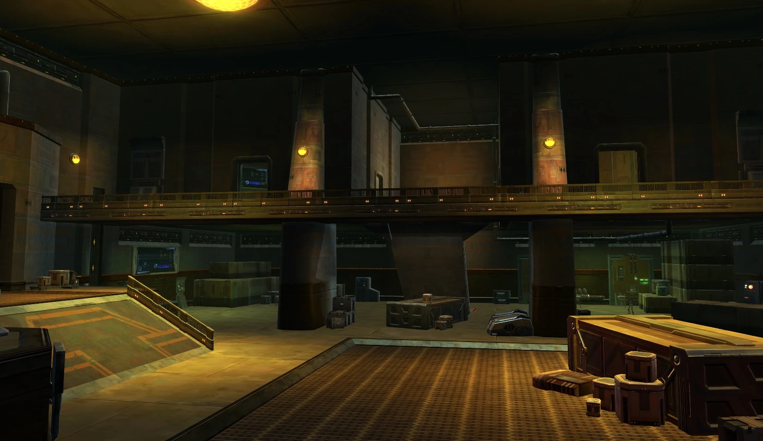 The Shield Control Station is an Imperial Agent class story area located on the planet Quesh. It can be reached from the Shadow Arsenal Facility. This building has two levels.